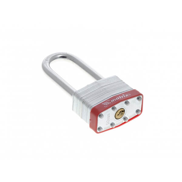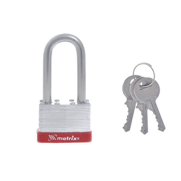 Замок навесной 50 мм, удлиненная дужка Matrix 91809 предназначен для запирания хозяйственных помещений, гаражей, складов, подвалов и т.д.