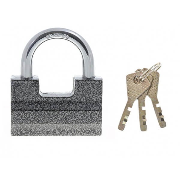 Замок повышенной защищенности со стальным корпусом и стальной закаленной дужкой. Предназначен для защиты ответственных помещений: гаражей, складов, магазинов. Имеет широкий проем дужки, что позволяет использовать их и для дверей с большим расстоянием между проушинами. Механизм секрета расположен сбоку. В комплекте 3 ключа.