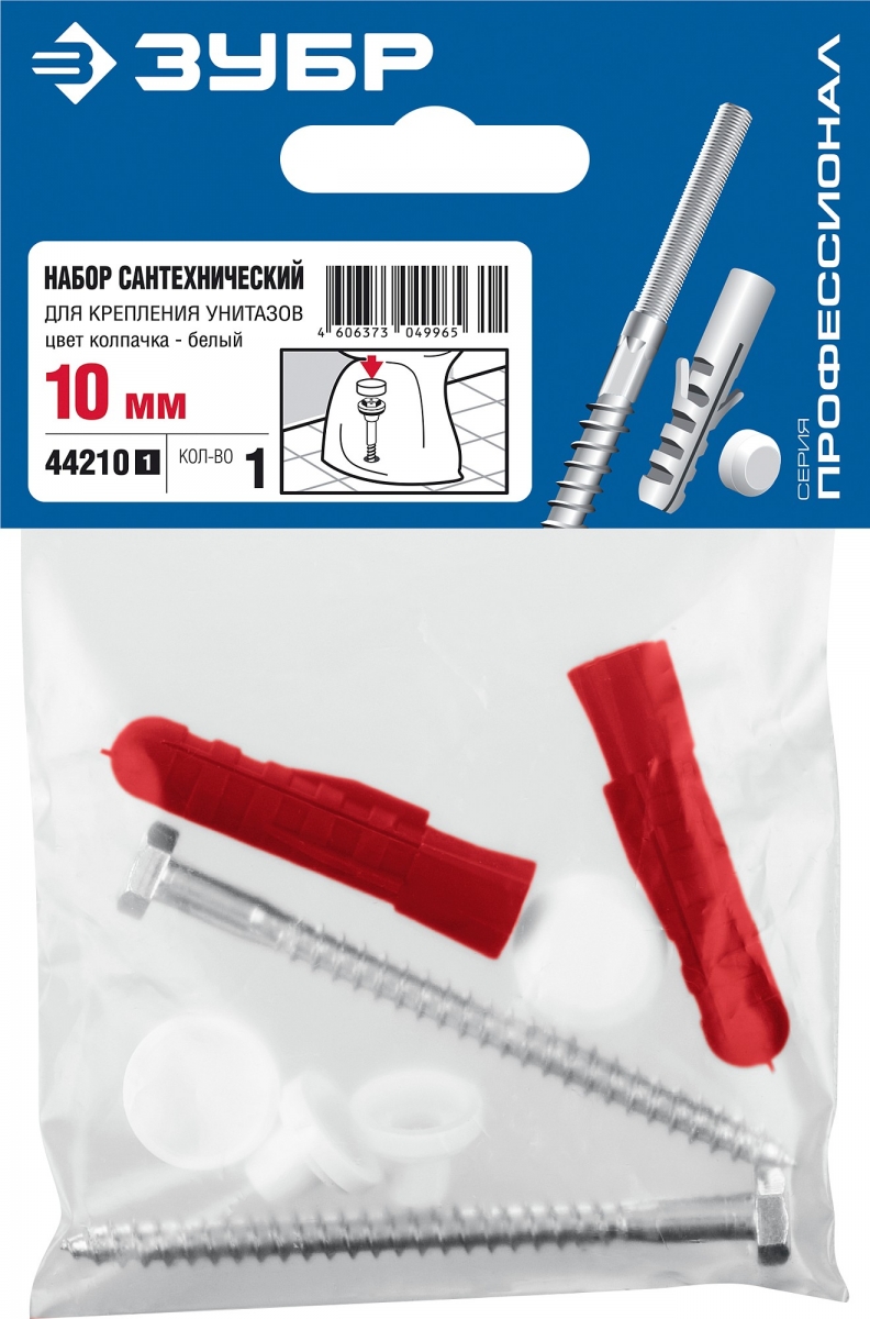 - Набор включает в себя полный комплект крепежных изделий, необходимых для установки унитаза: дюбели, шурупы, декоративные колпачки и втулки пластмассовые