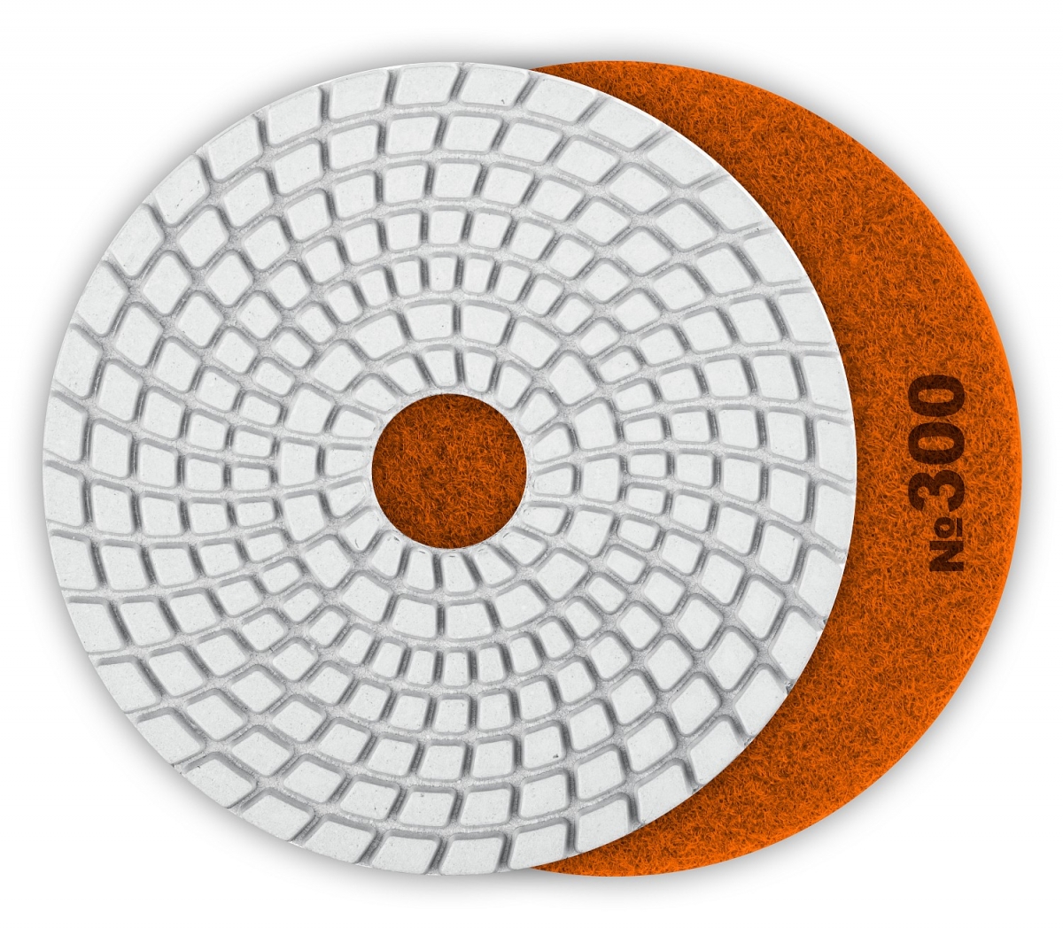 Для шлифовки и полировки изделий из натурального и искуственного камня, керамогранита, гранита, мрамора с применением водяного охлаждения. Используется на ручном электроинструменте (УШМ, полировальные машины, дрели) с насадкой адаптером под липучку Velcro.