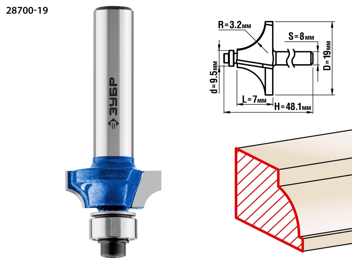 Фреза отлично подходит для скругления кромок при обработке столешниц, полок, шкафов и прочих работ с разнообразными видами древесины