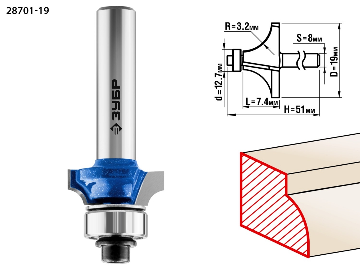 Фреза отлично подходит для скругления кромок при обработке столешниц, полок, шкафов и прочих работ с разнообразными видами древесины