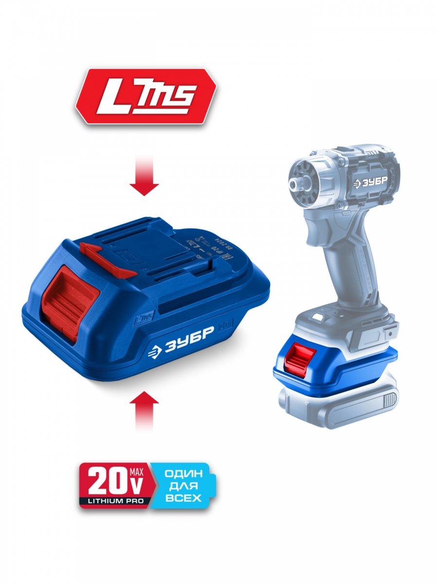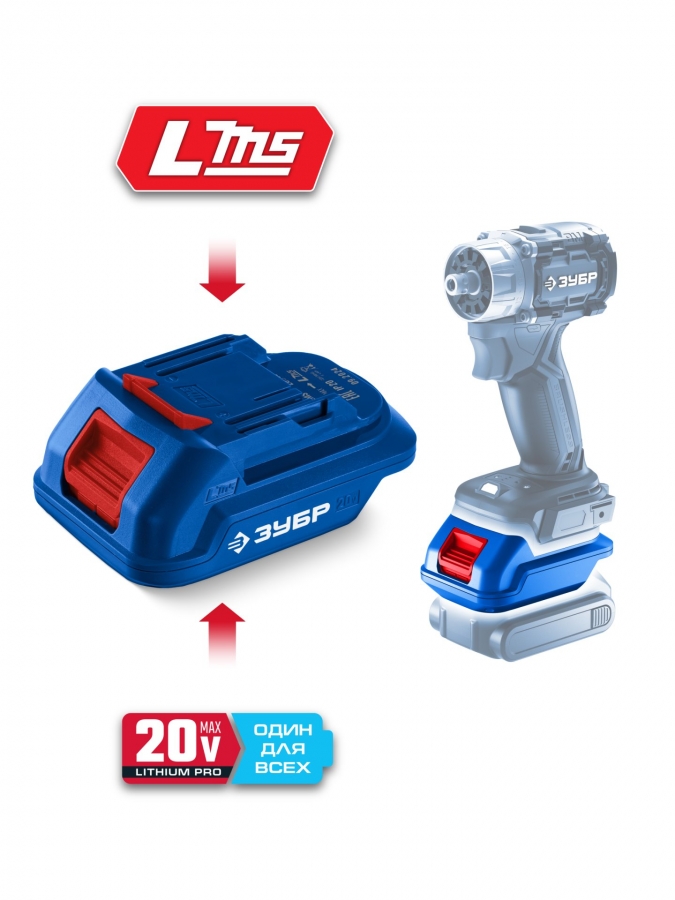 Адаптер совместимости инструмента системы LMS c АКБ системы 20В LITHIUM PRO (Т7). Позволяет устанавливать и использовать батареи T7 на инструменте LMS. Обеспечивает совместимость протоколов работы и защиты между системами