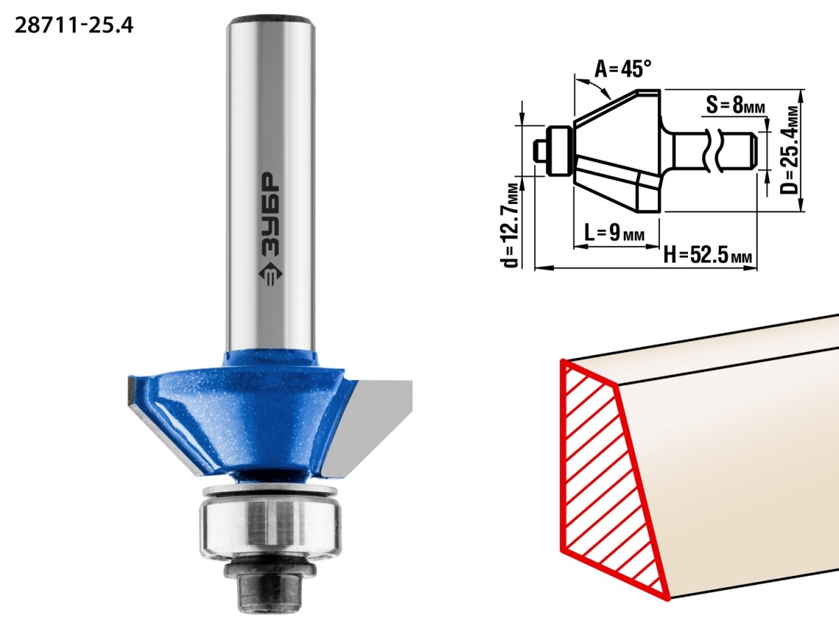 Фреза отлично подходит для изготовления фаски с заданным углом на кромках деталей при обработке столешниц, полок, шкафов и прочих работ с разнообразными видами древесины