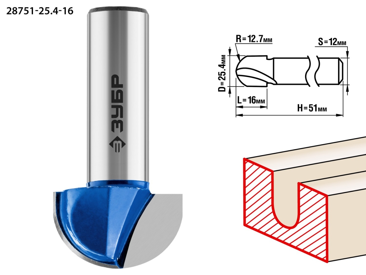 - радиус, мм: 12.7