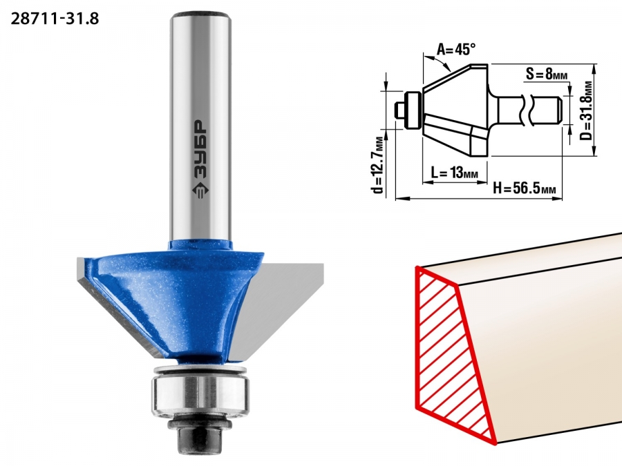 Фреза отлично подходит для изготовления фаски с заданным углом на кромках деталей при обработке столешниц, полок, шкафов и прочих работ с разнообразными видами древесины