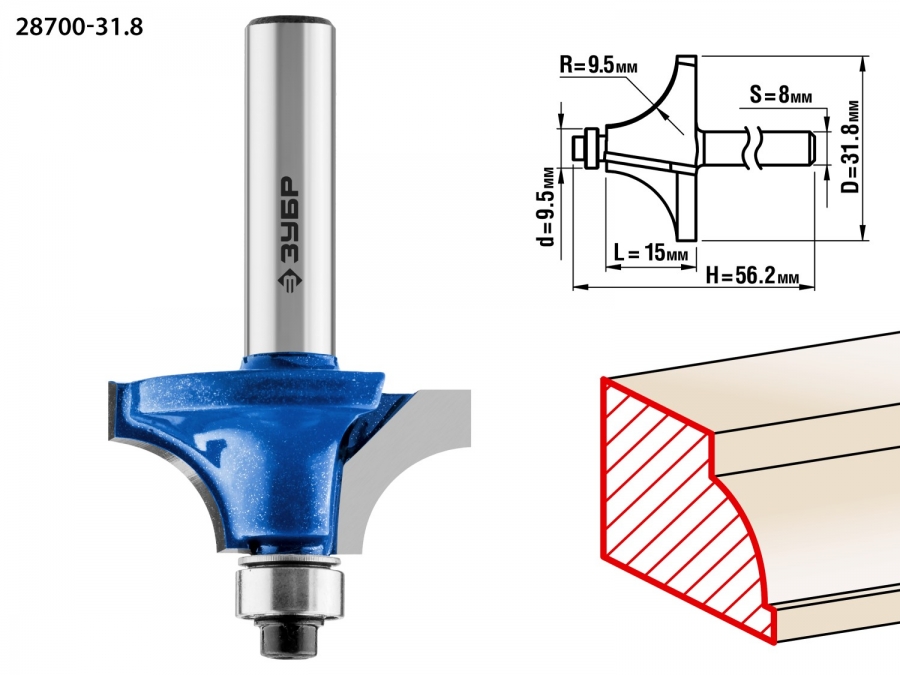 Фреза отлично подходит для скругления кромок при обработке столешниц, полок, шкафов и прочих работ с разнообразными видами древесины
