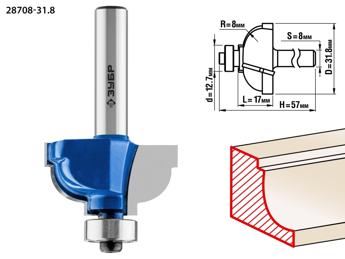 Фреза отлично подходит для скругления кромок при обработке столешниц, полок, шкафов и прочих работ с разнообразными видами древесины