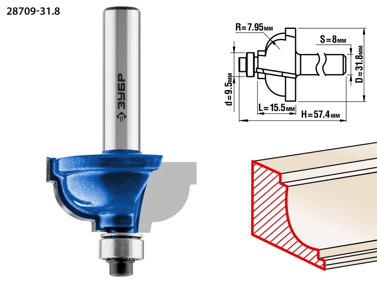 Фреза отлично подходит для скругления кромок при обработке столешниц, полок, шкафов и прочих работ с разнообразными видами древесины