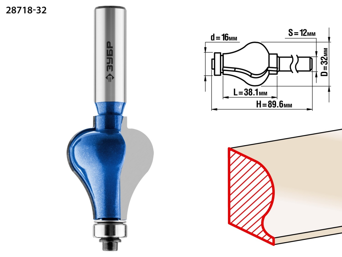Фреза отлично подходит для изготовления фигурных кромок и торцев деталей при обработке различных видов древесины.