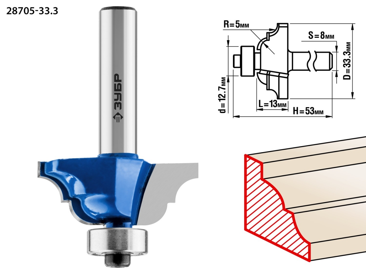 Фреза отлично подходит для скругления кромок при обработке столешниц, полок, шкафов и прочих работ с разнообразными видами древесины
