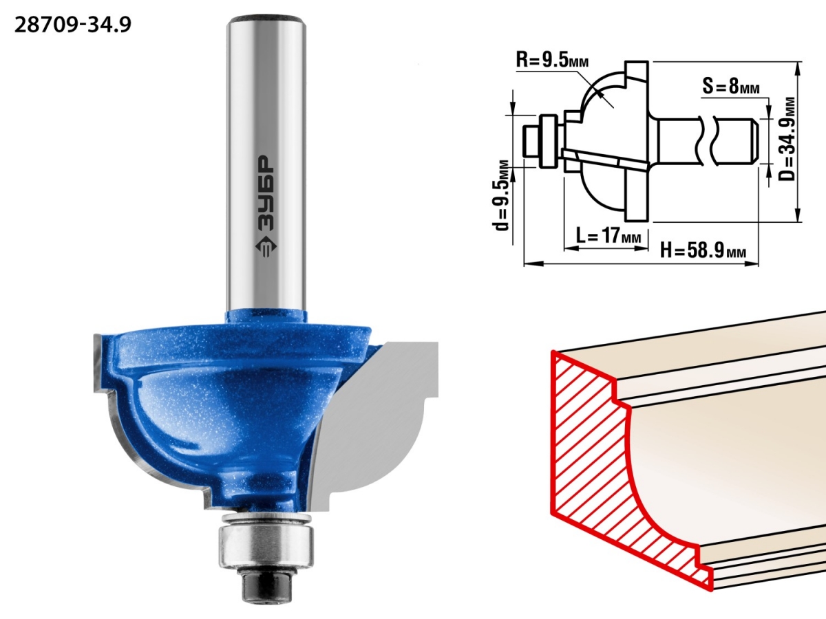 Фреза отлично подходит для скругления кромок при обработке столешниц, полок, шкафов и прочих работ с разнообразными видами древесины