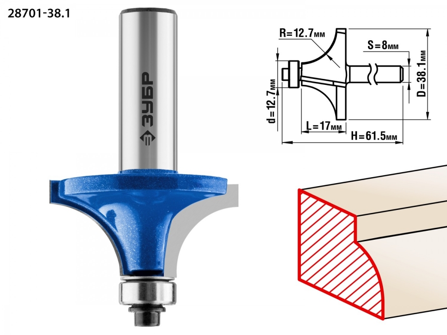 Фреза отлично подходит для скругления кромок при обработке столешниц, полок, шкафов и прочих работ с разнообразными видами древесины