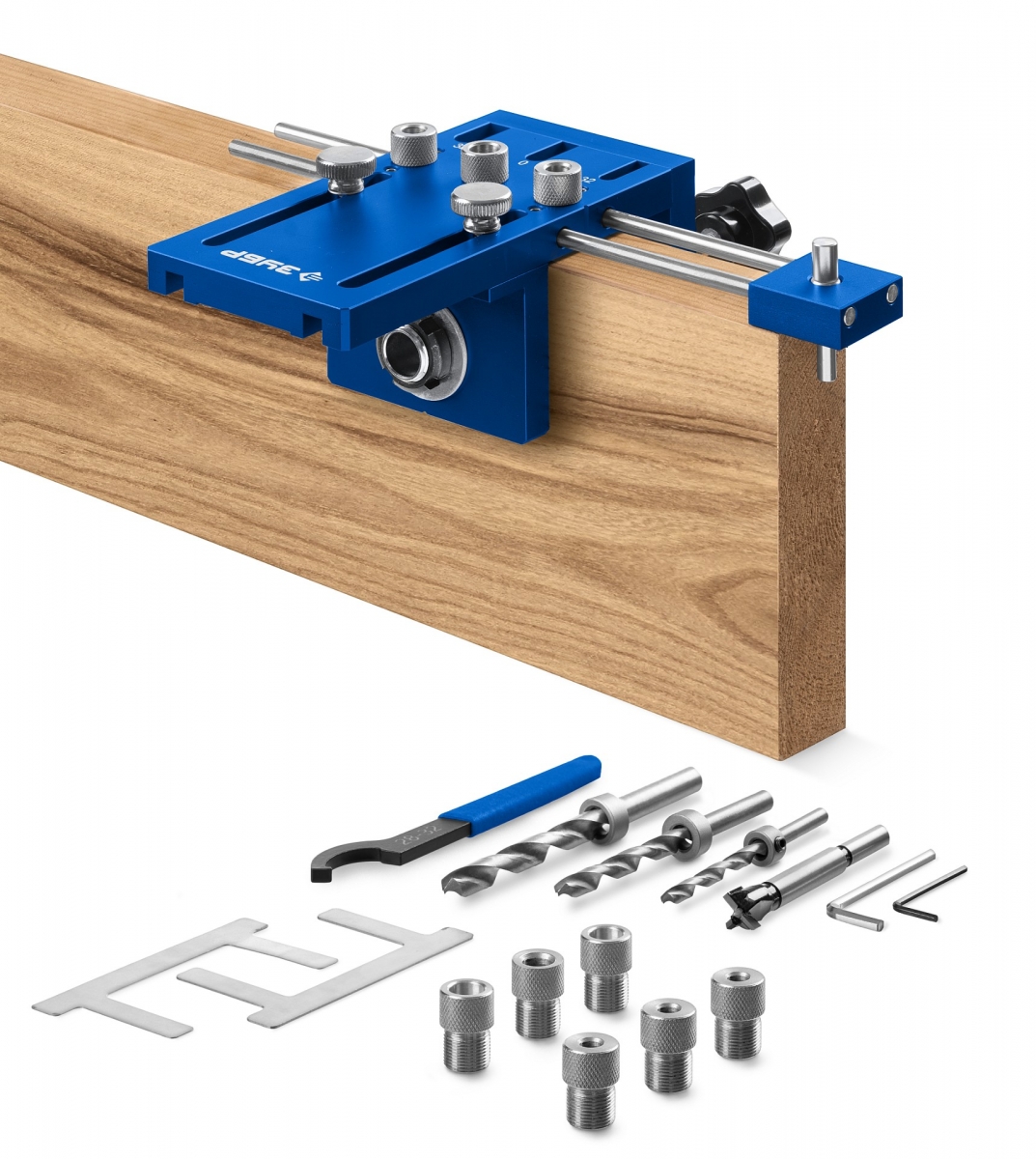 - Упор с направляющей для сверления под эксцентриковую стяжку