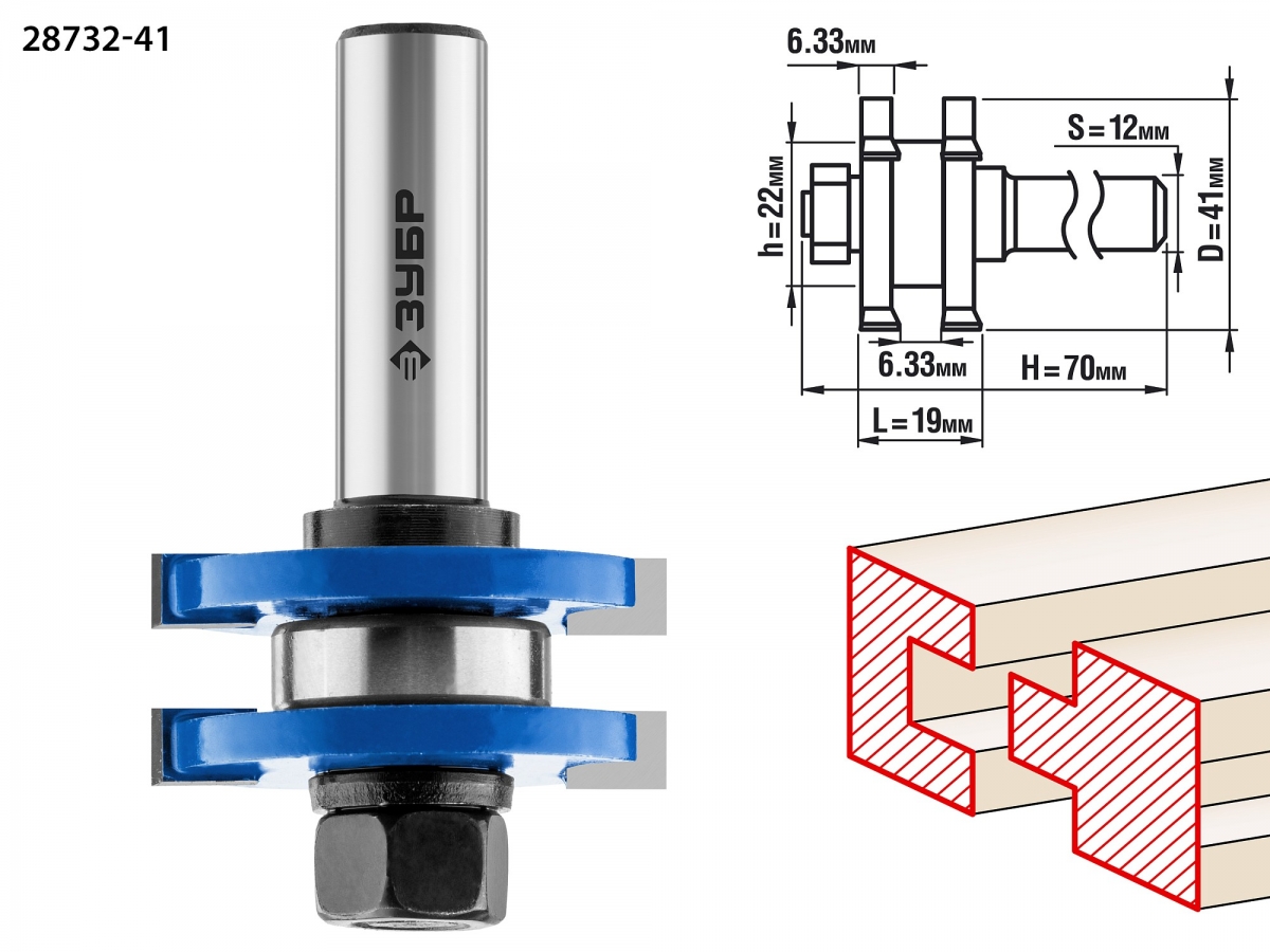 Фреза отлично подходит для изготовления пазо-шиповых соединений и сращивания деталей и заготовок при работе с различными видами древесины.