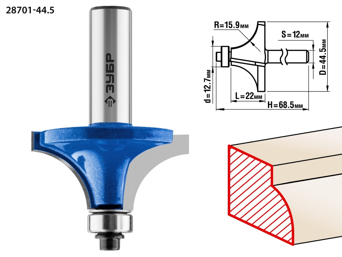 Фреза отлично подходит для скругления кромок при обработке столешниц, полок, шкафов и прочих работ с разнообразными видами древесины