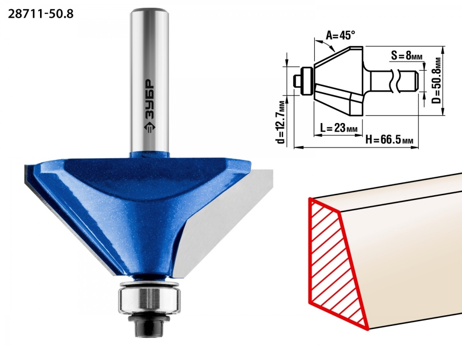 Фреза отлично подходит для изготовления фаски с заданным углом на кромках деталей при обработке столешниц, полок, шкафов и прочих работ с разнообразными видами древесины
