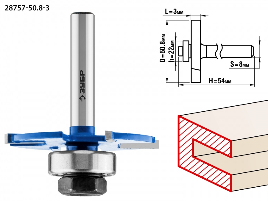 Фреза отлично подходит для выборки пазов на кромках и торцах деталей при работе с различными видами древесины.