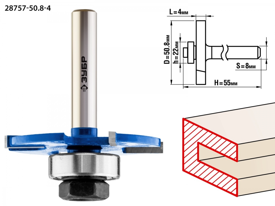 Фреза отлично подходит для выборки пазов на кромках и торцах деталей при работе с различными видами древесины.