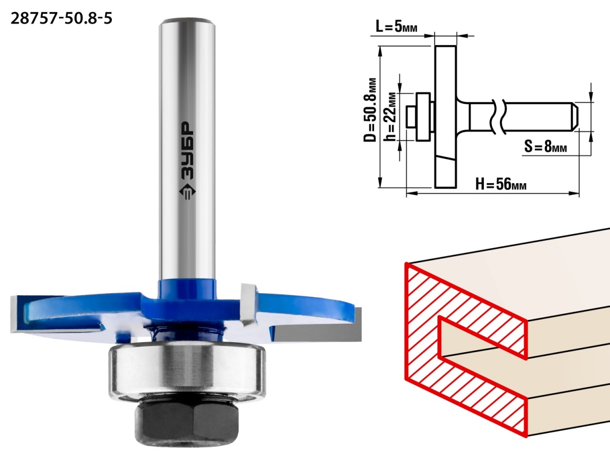Фреза отлично подходит для выборки пазов на кромках и торцах деталей при работе с различными видами древесины.