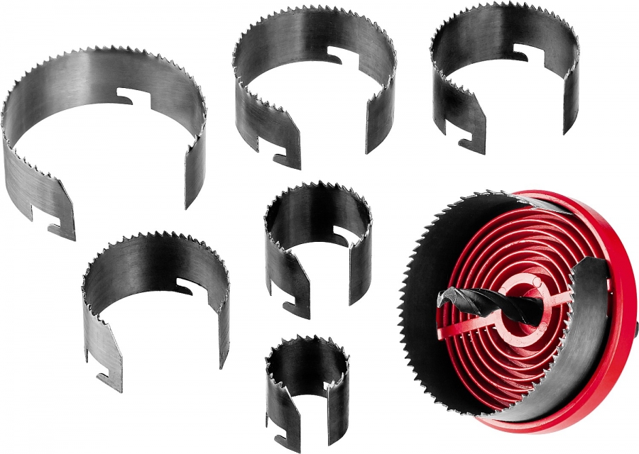 Наборная кольцевая пила Зубр это многолетний опыт создания инструментов для реализации самых сложных задач в строительстве и производстве. Применяется при сверлении дерева, ДСП и прочих древесных материалов