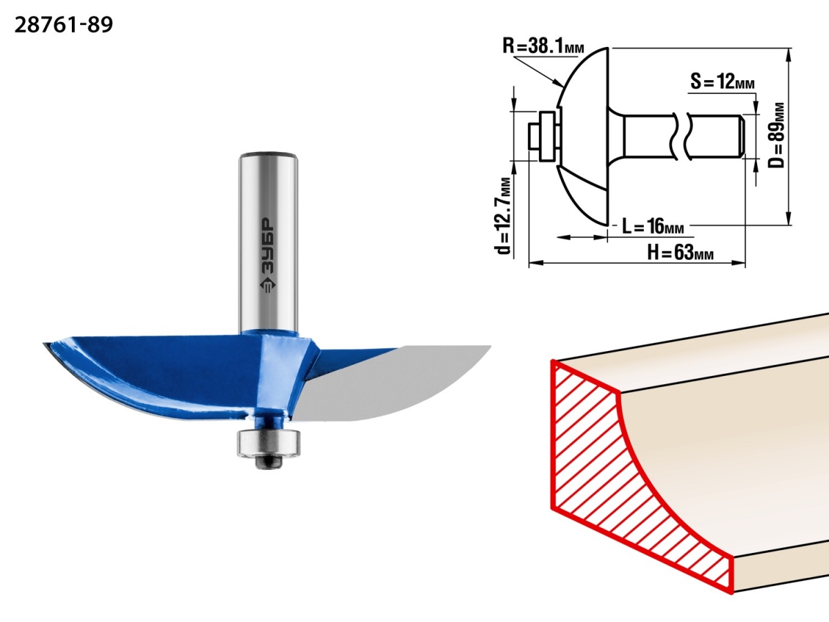 - радиус, мм: 38.1
