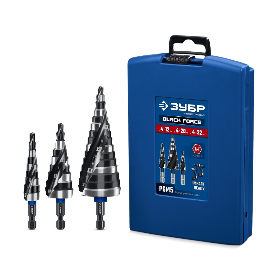 - Комплектация: 4 - 12, 9 ступеней: 4,5,6,7,8,9,10,11,12 мм, 4 - 20, 9 ступеней: 4,6,8,10,12,14,16,18,20мм, 4 - 32, 15 ступеней: 4,6,8,10,12,14,16,18,20,22,24,26,2