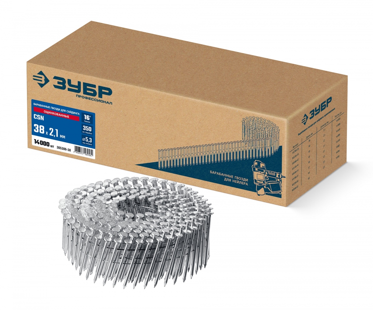 Барабанные гвозди для сайдинга соединены в обойму под углом 16° и забиваются при помощи гвоздезабивного пистолета (нейлера). Уменьшенный диаметр гвоздя оптимален для крепления сайдинга. Использование нейлера обеспечивает высокую скорость монтажа и удобство в работе.