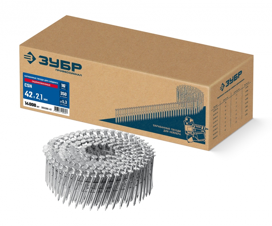 Барабанные гвозди для сайдинга соединены в обойму под углом 16° и забиваются при помощи гвоздезабивного пистолета (нейлера). Уменьшенный диаметр гвоздя оптимален для крепления сайдинга. Использование нейлера обеспечивает высокую скорость монтажа и удобство в работе.