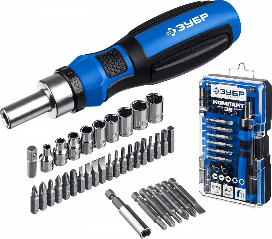 Профессиональный компактный набор с реверсивной отверткой для работы как с ручным так и с электроинструментом