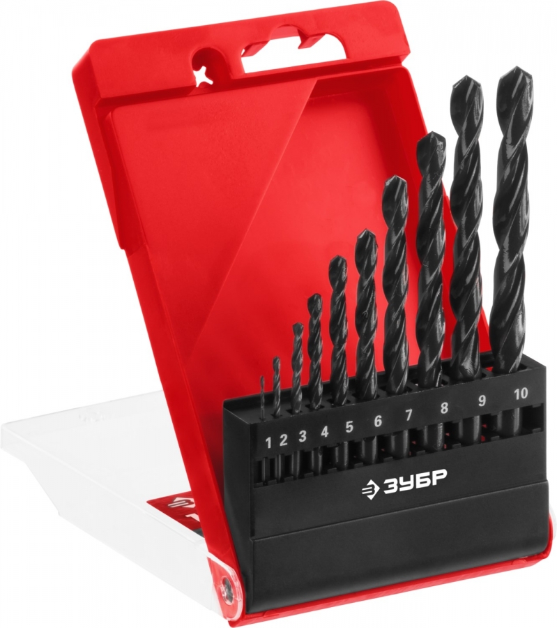 ЗУБР МАСТЕР 10шт(1-10мм), Набор сверл по металлу, сталь Р4М2, класс В 29605-H10