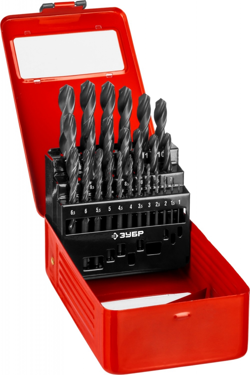 ЗУБР МАСТЕР 25шт(1-13мм), Набор сверл по металлу, сталь Р4М2, класс В, мет.бокс 29605-H25