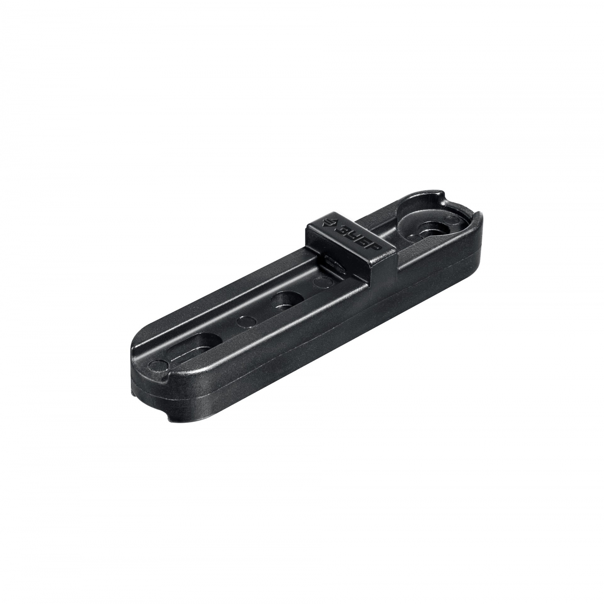 Для скрытого монтажа фасадной и террасной доски. Изготовлен из композитного материала, не подверженного коррозии, благодаря чему может применяться в условиях повышенной влажности (пристани, палубы, пирсы и т.п.)