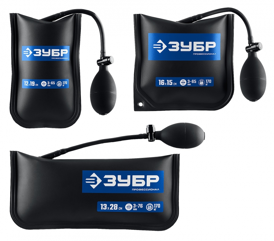 Профессиональный инструмент из прочных и высококачественных материалов, набор подходит для многочисленных вариантов использования: Установка окон, шкафов, дверей, бытовой техники, систем вентиляции и кондиционирования, столешниц, мебели и многого другого! Безопасный подъем тяжелых предметов (например холодильников, шкафов) для доступа под ними. Экономьте время благодаря возможностям набора пневмоклиньев ЗУБР. Поставляется в удобном прочном чехле из ткани Оксфорд 420d.