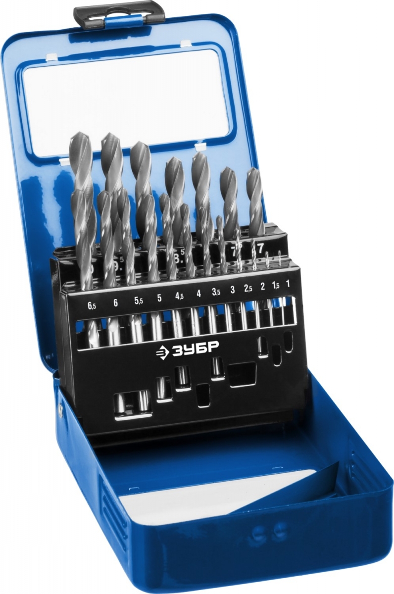 ЗУБР ПРОФ-В 19шт(1-10мм), Набор сверл по металлу, сталь Р6М5, класс В, мет.бокс 29621-H19