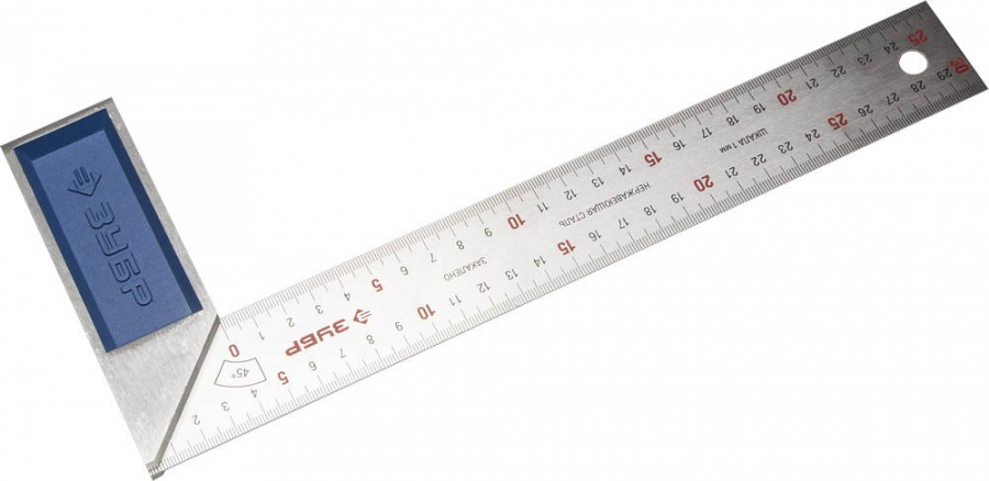 Усиленный профессиональный столярный угольник с нержавеющим полотном. Изготовлен с высокой точностью на прецизионном оборудовании, что обеспечивает высокую надёжность измерительных работ.
