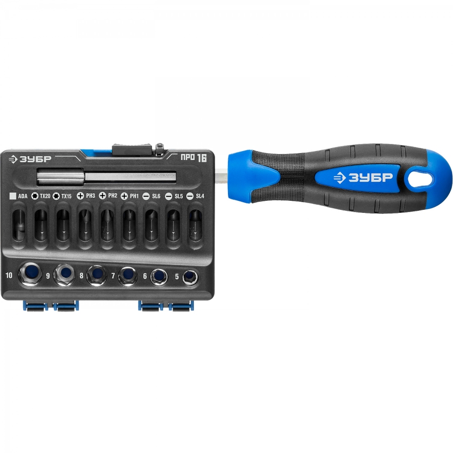 ЗУБР Профессионал-Б16 набор: отвертка-битодержатель с насадками 16 шт 25216