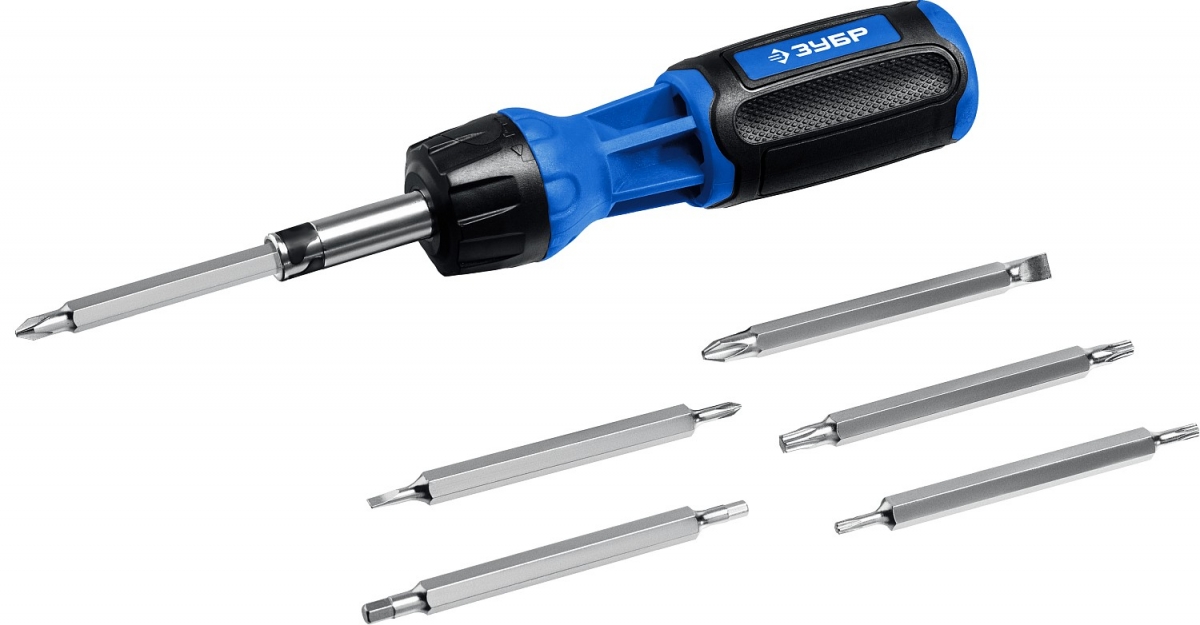ЗУБР Профессионал-Р12 набор: реверсивная отвертка с насадками 12 шлицов 25169