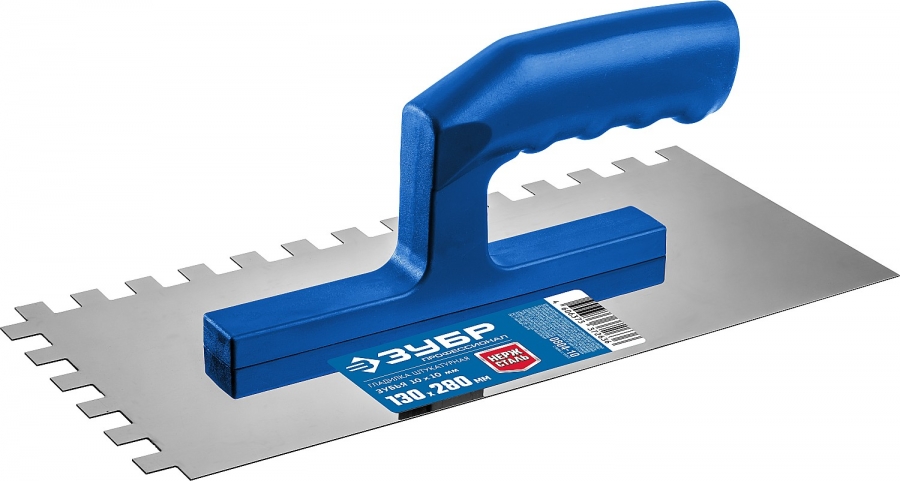 ЗУБР Профи 130х280 мм, 10х10 мм, гладилка штукатурная зубчатая нержавеющая с пластиковой ручкой. Серия Профессионал. 0804-10