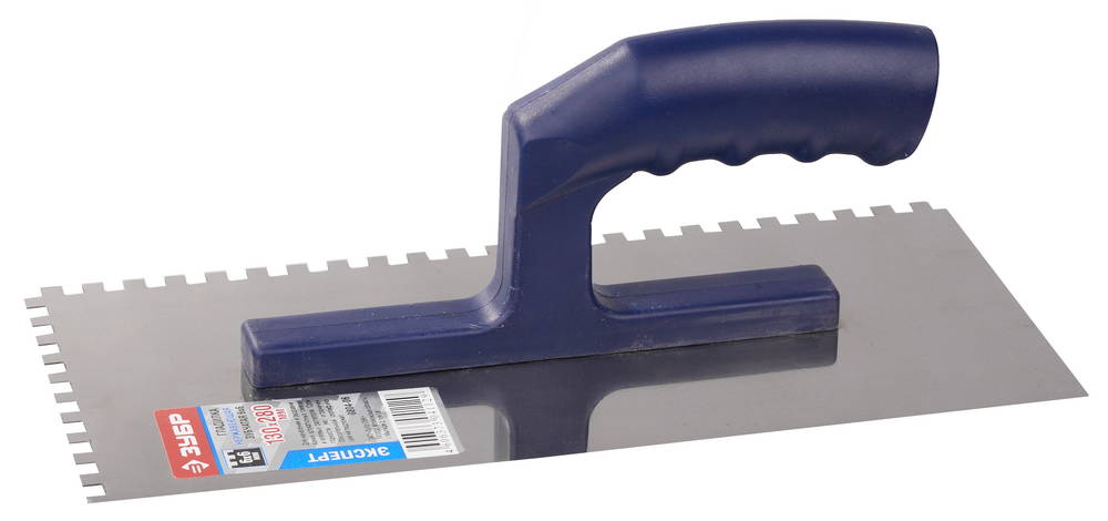 Зеркально отполированное нержавеющее полотно обеспечит надежность конструкции, лучшую защиту от коррозии, а удобная рукоять из ударопрочной пластмассы обеспечит комфортную работу при нанесении и распределении штукатурных смесей и клеевых составов.