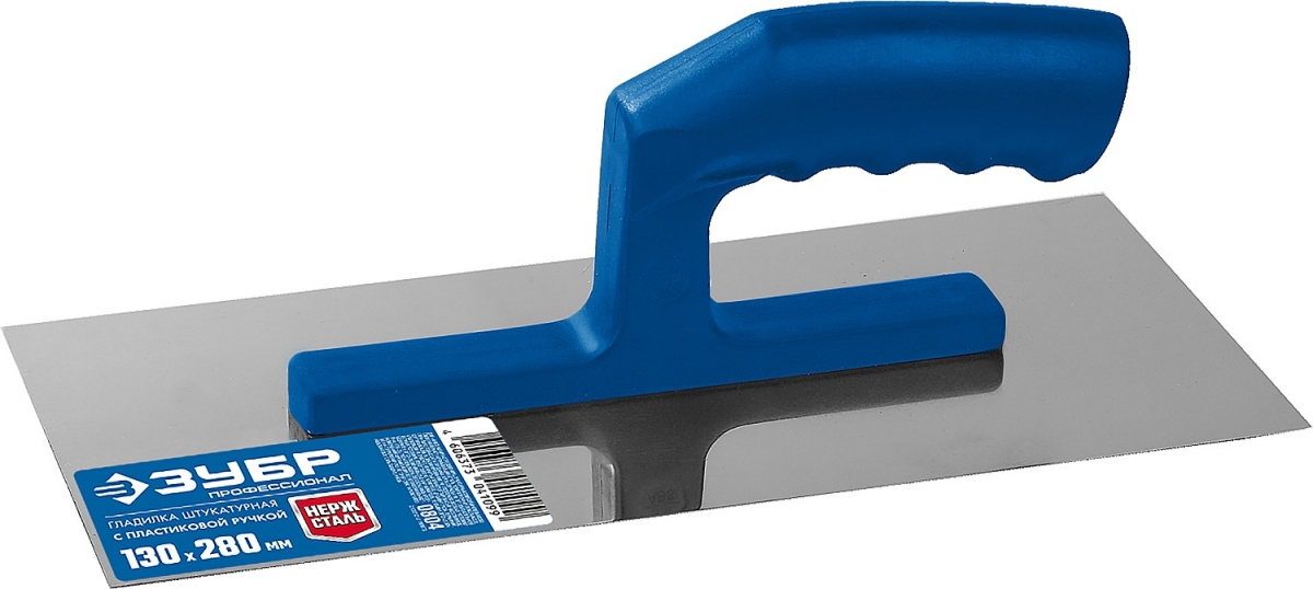 ЗУБР Профи 130х280 мм гладилка штукатурная нержавеющая с пластиковой ручкой. Серия Профессионал. 0804
