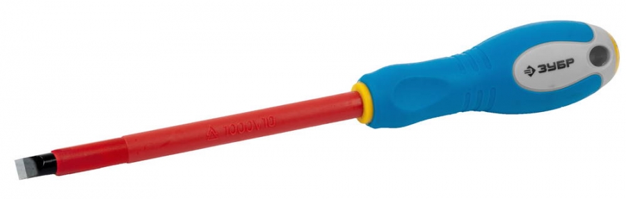 ЗУБР ПРОФИ ЭЛЕКТРИК . Отвертка Cr-V, трехкомпонент рукоятка, высоковольтная до ~1000В, SL, 8,0x175 мм 25261-8.0-175