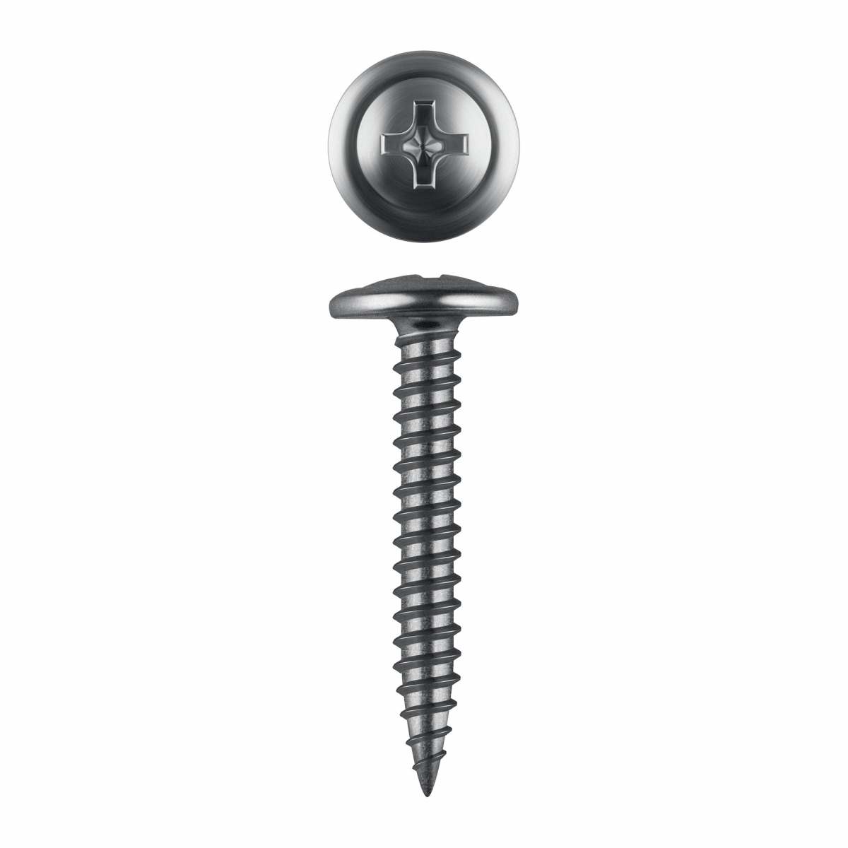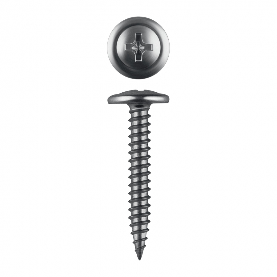 Саморезы с пресс-шайбой для листового металла изготовлены из стального прутка с высоким содержанием углерода. Контроль за геометрией самореза начинается с калибровки прутка и заканчивается тщательной проверкой размеров готового изделия. Нормативная твердость стали достигается термической обработкой. Поверхностная твердость 550-720HV, твердость в сердцевине 240-450HV. Саморезы легко вкручиваются обычным шуруповертом или отверткой с крестообразным шлицем PH2 (DIN). Предварительное сверление в скрепляемых материалах не требуется. Геометрические размеры: диаметр пресс-шайбы (W) - 10.5-11.0мм, диаметр головки (Dk) - 6.5-7.0мм, диаметр резьбы (D) - 4.1-4.3мм, шаг резьбы (Pi) - 3.38мм.